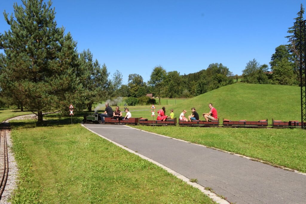 Schlau eingefädelt, denn wer kann nach dem Betrachten so einer Anlage den Kindern schon die zwei Euros verwehren, die ein Ticket für die Fahrt mit dem Dampfzug am Freigelände kostet?