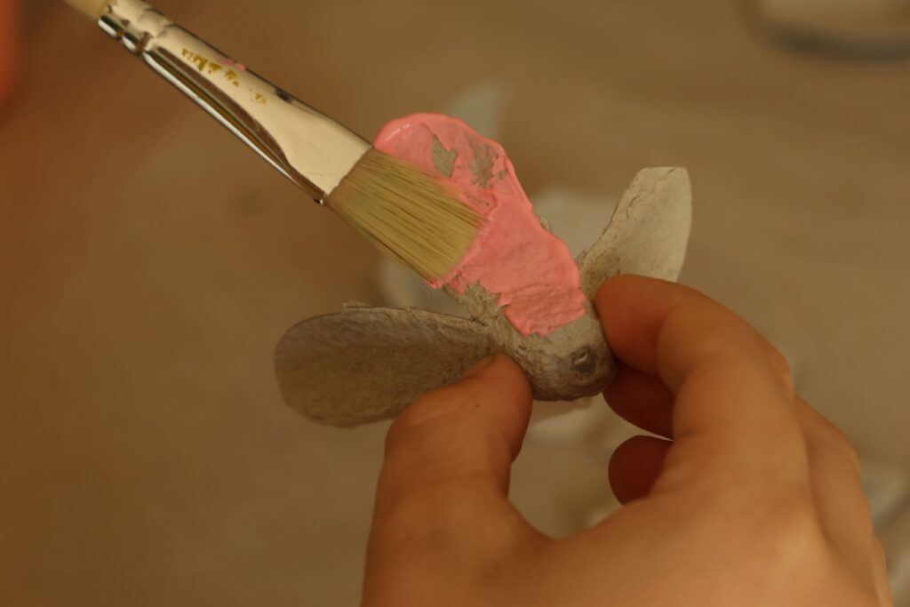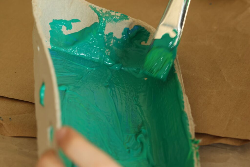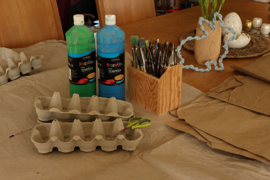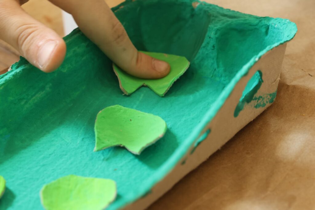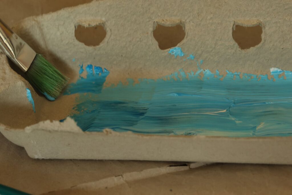 Die Deckel der Eierkartons wurden von den Kindern mit Temperafarben bemalt. Während Linus (11) bereits ein gewisses künstlerisches Auge für die unterschiedlichen Farbnuancen von Gewässern entwickelte und Grün als wichtige Komponente erkannte, …