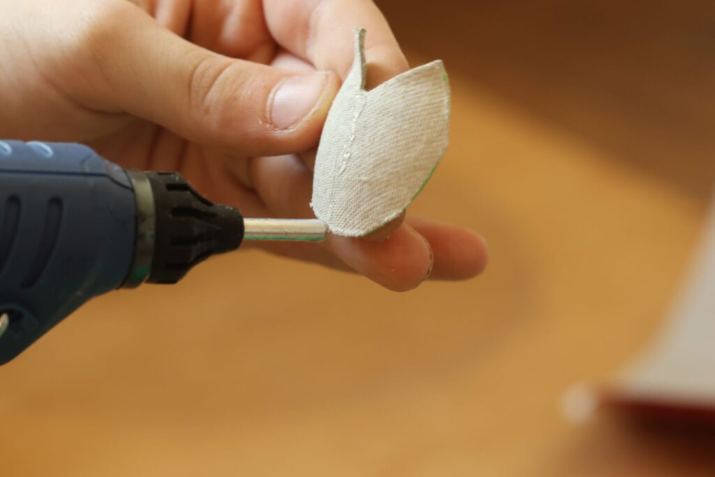 Zu guter Letzt fehlte nur noch die abschließende Gestaltung der beiden kleinen Seerosenteiche. Mit Heißkleber positionierte Linus (11) selbständig alle Seerosen in seinem „Teich“.