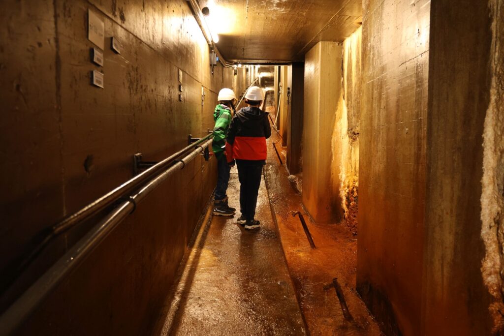 Turbine und Generator in natura zu sehen, war zweifellos auch etwas ganz Besonderes. Den absoluten Höhepunkt der Führung stellte aber die angekündigte Begehung der Staumauer selbst dar. Der Gang, der soeben noch kohlrabenschwarz vor uns gelegen war und den Eindruck erweckt hatte, als reichte er gerade einmal drei Meter weit, offenbarte sich nach Betätigung des Lichtschalters als langgezogener, geheimnisvoller Korridor.