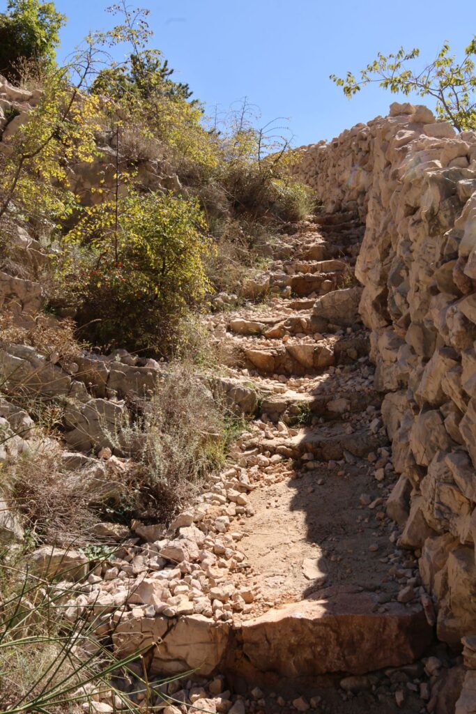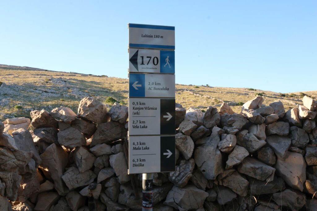Ein traumhafter Herbsttag mit klarem Himmel, ruhigem Seegang und angenehmen Temperaturen um die 20 °C versprach ideale Bedingungen für eine Wanderung. Anfangs noch einem erdigen Waldpfad folgend wurde der Weg bald steiniger und begleitet von oft mannshohen „Gromače“, jenen typisch kroatischen Trockensteinmauern, die das gesamte Landschaftsbild prägen. Diese Zeugen des mühsamen Alltags der Inselbewohner bestehen aus jenen Steinen, die mühevoll von Hand fortgeschafft werden müssen, um eine Landfläche überhaupt nutzbar machen zu können.