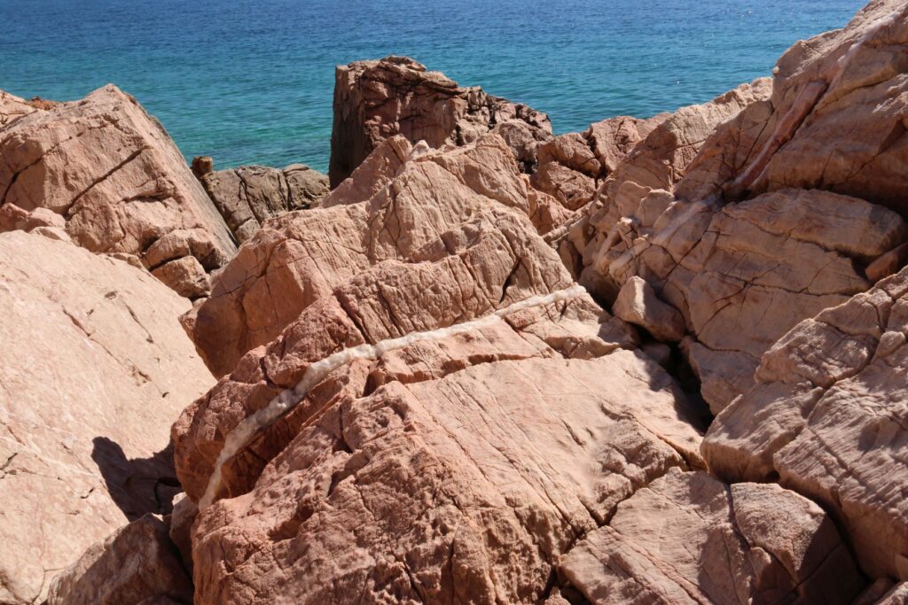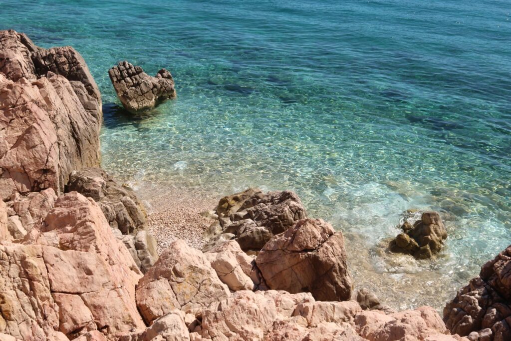 Ein kurzer, schmaler Betonsteig – zur Linken eine beinahe senkrechte Steilwand, zur Rechten im Kontrast dazu das sanfte Meer – führte zu einem malerischen Klippenwanderweg. Das anfängliche Gequassel der Kinder verstummte im gleichen Ausmaß wie ihre Konzentration stieg. Wenn sich der Pfad nicht durch klippennahe Pinien-Baumgruppen schlängelte, verlief er direkt am Felsen. Oft klafften einige Meter Abgrund zwischen dem auf steinigem Untergrund lediglich erahnbaren Wandersteig und dem Wasser unter uns. Gutes Schuhwerk und absolute Trittsicherheit waren hier indiskutable Grundvoraussetzung. Unsere Jungs waren jedenfalls selig und bewegten sich flink und geschickt auf dem anspruchsvollen Untergrund. Der knifflige Teil der Tour dauerte nicht allzu lange. Bald schon verlief die Strecke wieder auf sicherem Boden.