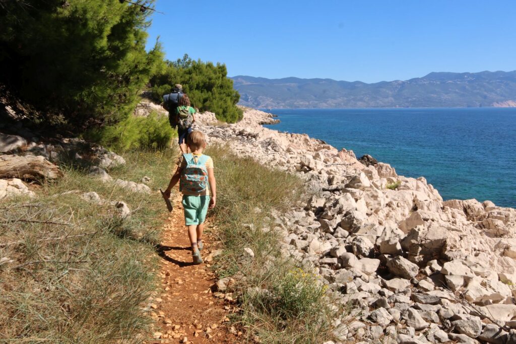 Als wir oberhalb des Städtchens Baška auf der Insel Krk unser Auto parkten und noch einmal die Wasservorräte in den Rucksäcken überprüften, wussten wir noch nicht genau, wohin uns unsere Füße tragen würden. Unsere beiden jüngeren Kinder (gerade 6 und 11 Jahre alt), die uns begleiteten, marschierten schnurstracks voran. So blieb kaum Zeit, den Ausblick auf das einst kleine Fischerdorf zu erhaschen, das heute zu einem vielbesuchten Urlaubsort herangewachsen ist.